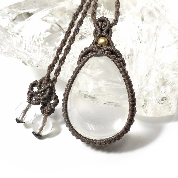 ブラジル産のクリアクォーツ(水晶)を使用したマクラメペンダントです。