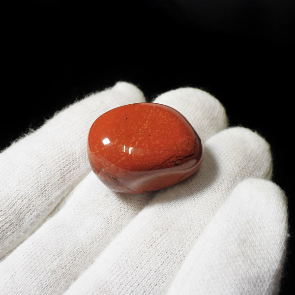 ブラジル産のポピージャスパー、タンブルです。 ジャスパーは、様々な不純物を含んだ石英の総称で、含まれる不純物によって、赤、緑、黄、黒、褐色など、多くの色や模様を持ちます。古くから「聖なる石」と崇められてきた鉱物で、太陽崇拝のインカ帝国では、レッドジャスパーが生命の源の石としてまつりに使用されていたそうです。このポピージャスパーは鮮やかで艶があり、石英によって独特の模様が楽しめます。