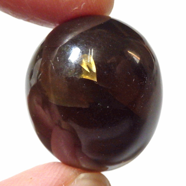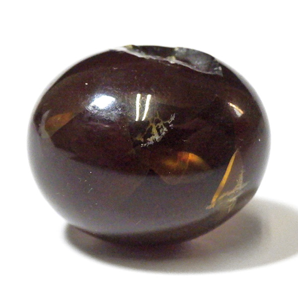 インドネシア産のアンバー(琥珀)、タンブルです。 松柏類の樹脂が3000万年以上の時を経て化石化したものです。 アンバーという名前は、古代アラビア語の「アンバール(海に漂うもの)」が由来です。インドネシアのスマトラで採取されるアンバーは石炭層の中から採れるのが特徴で、落ち着いた色合いのものが多いです。ブランデーのような深い色合いのアンバー内に斑点に似た濃い色の部分が見られます。スマトラアンバーは白熱光の下では赤みがかった色合いを示し、ブラックライトなどを使い、紫外線の下では青い蛍光を示す光学的特徴も持っています。色が綺麗なことはもちろん光を通しても綺麗で美しいです。