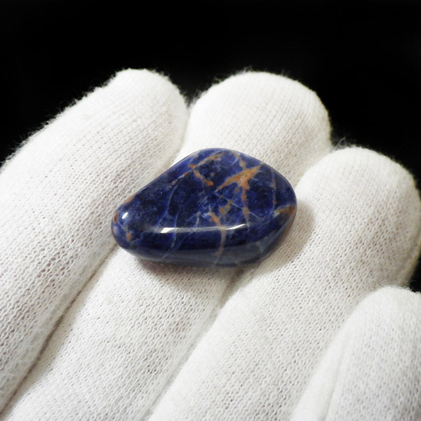 インド産のサンセットソーダライト、タンブルです。サンセットソーダライトは可愛いオレンジが入ったソーダライトです。ソーダライトはブルーが象徴的な石ですが、そこにオレンジ色のゼオライトが入り込み、この様な鮮やかなバイカラーストーンになります。まだ流通量が少なく、知る人ぞ知るパワーストーンとして人気があります。 晴れた青空が夕方を迎えて、少しづつ夕陽に染まりゆく僅かな時間・・・そんなイメージから サンセットソーダライトと呼ばれたのだと思います。