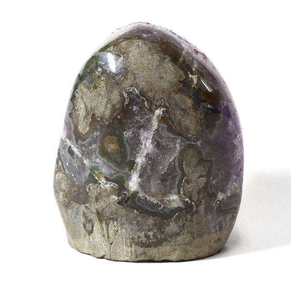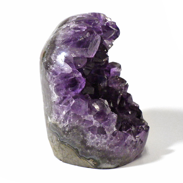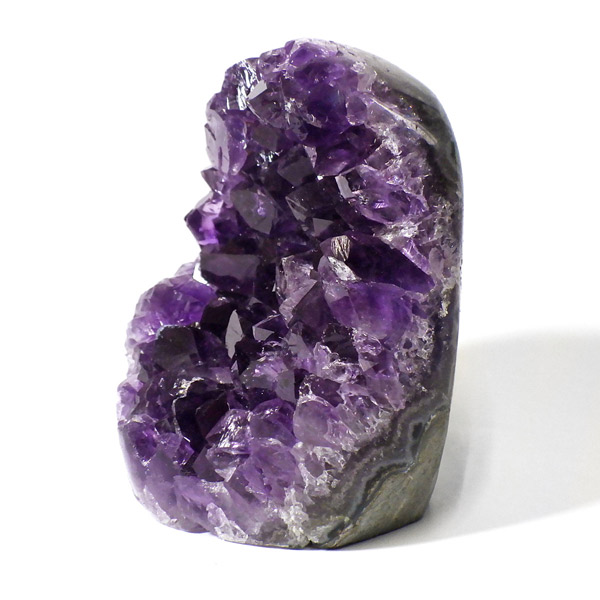 ウルグアイ産のアメジストクラスターです。良質なアメジストの証である深い紫の色がしっかりと入っています。底面を平らにカットしておりますので据わりが良く、ドームの様にそのまま置いて頂けます。
