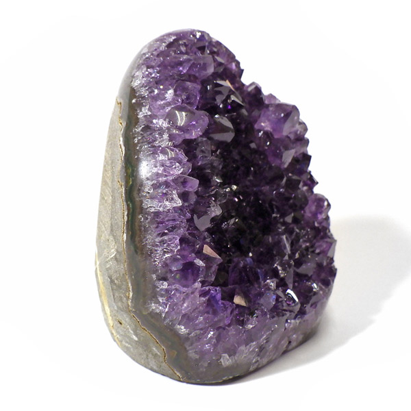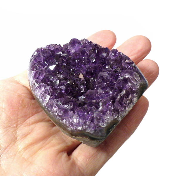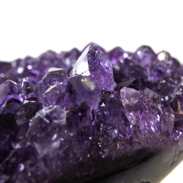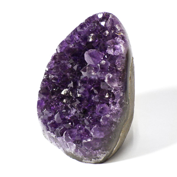 ウルグアイ産のアメジストクラスターです。良質なアメジストの証である深い紫の色がしっかりと入っています。底面を平らにカットしておりますので据わりが良く、ドームの様にそのまま置いて頂けます。