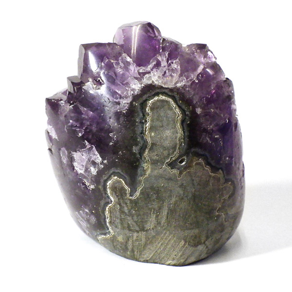 ウルグアイ産のアメジストクラスターです。良質なアメジストの証である深い紫の色がしっかりと入っています。底面を平らにカットしておりますので据わりが良く、ドームの様にそのまま置いて頂けます。