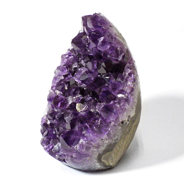 ウルグアイ産のアメジストクラスターです。良質なアメジストの証である深い紫の色がしっかりと入っています。底面を平らにカットしておりますので据わりが良く、ドームの様にそのまま置いて頂けます。