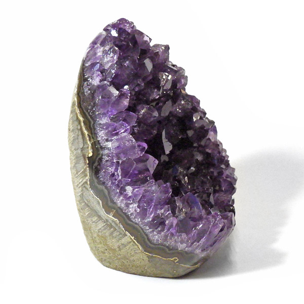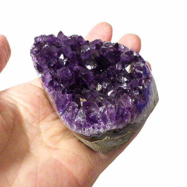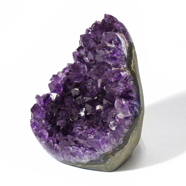 ウルグアイ産のアメジストクラスターです。良質なアメジストの証である深い紫の色がしっかりと入っています。底面を平らにカットしておりますので据わりが良く、ドームの様にそのまま置いて頂けます。