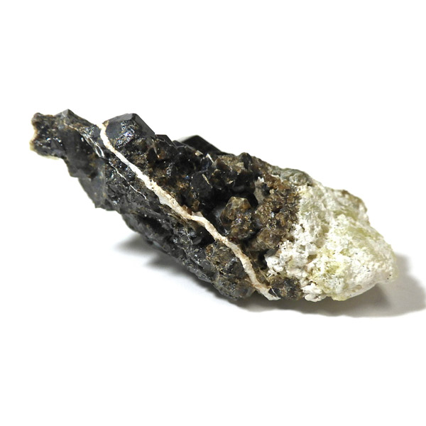 メキシコ産ブラックガーネット原石です。ブラックのガーネットで結晶形が非常に綺麗に確認できます。光を受けると、わずかにガラス質の艶を帯びた重厚な照りがあり、力強い存在感を放っています。 ガーネット族の中でもアンドラダイトに属するブラックタイプ、いわゆる「メラナイト」と呼ばれる種類です。 鉄やチタンの影響によって生まれるこの黒色は、他のガーネットにはない独特の深みを持っています。