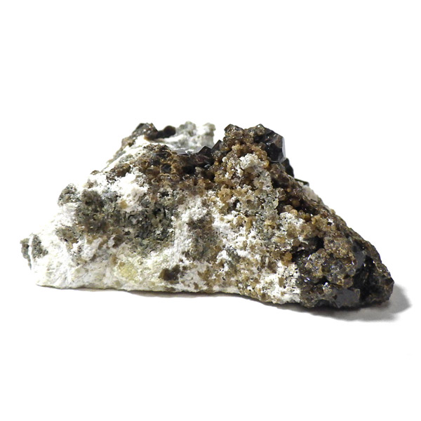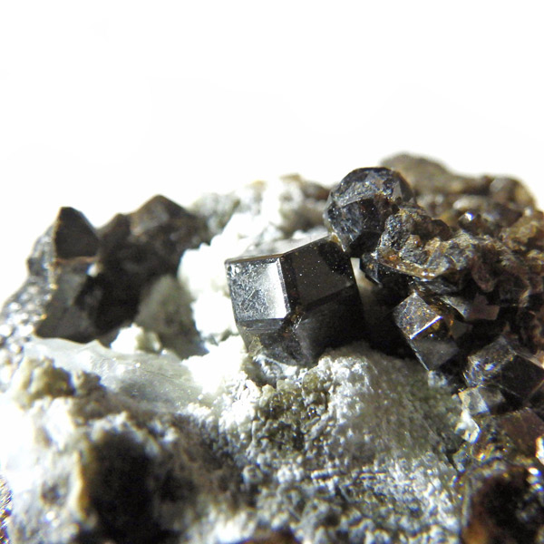 メキシコ産ブラックガーネット原石です。ブラックのガーネットで結晶形が非常に綺麗に確認できます。光を受けると、わずかにガラス質の艶を帯びた重厚な照りがあり、力強い存在感を放っています。 ガーネット族の中でもアンドラダイトに属するブラックタイプ、いわゆる「メラナイト」と呼ばれる種類です。 鉄やチタンの影響によって生まれるこの黒色は、他のガーネットにはない独特の深みを持っています。