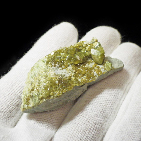 やや深みのあるグリーンが印象的なグリーンガーネット原石です。 落ち着いた緑の中に、わずかにオレンジのニュアンスを感じさせる独特の色彩は、自然が生み出した複雑な成分バランスによるものです。 ガーネット族の中でもアンドラダイト系に属し、鉄の影響によって生まれる深いグリーンが特徴です。 光の当たり方によって表情を変え、しっとりとした艶やかな輝きをお楽しみいただけます。
