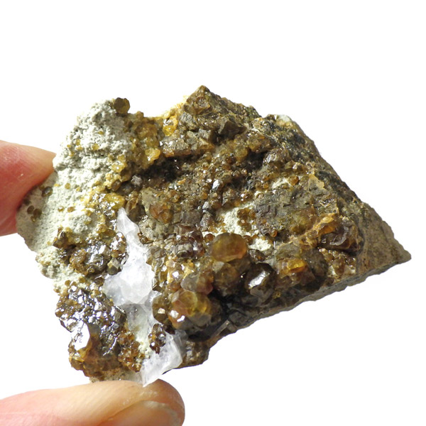 深みのあるグリーンが印象的なグリーンガーネット原石です。 落ち着いた緑の中に、わずかにオレンジのニュアンスを感じさせる独特の色彩は、自然が生み出した複雑な成分バランスによるものです。 ガーネット族の中でもアンドラダイト系に属し、鉄の影響によって生まれる深いグリーンが特徴です。 光の当たり方によって表情を変え、しっとりとした艶やかな輝きをお楽しみいただけます。