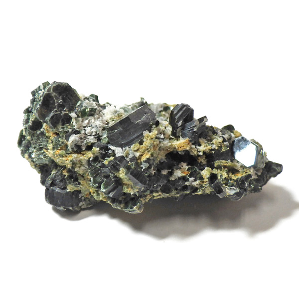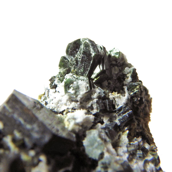 クロライト(緑泥石)グループに属するクリノクロアで、鉄やマグネシウムを含むことにより生まれる独特のグリーンが特徴的。美しい羽のような模様で知られるセラフィナイトも、同じクリノクロアに分類される鉱物です。