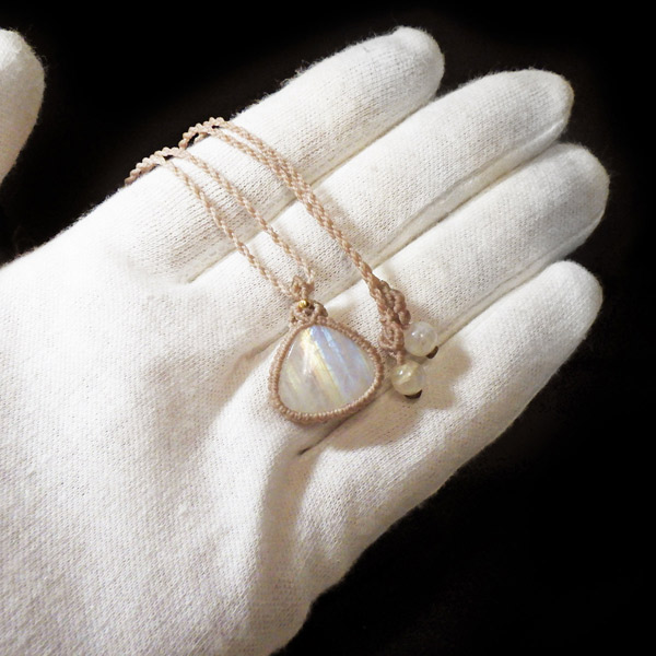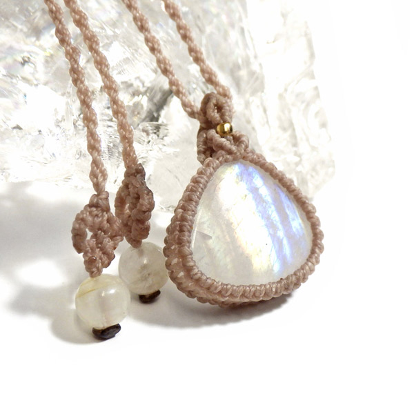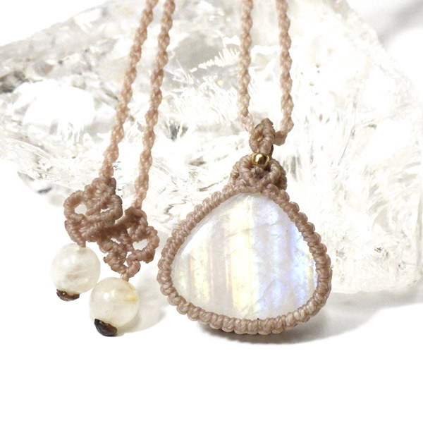レインボームーンストーン マクラメペンダント インド産
